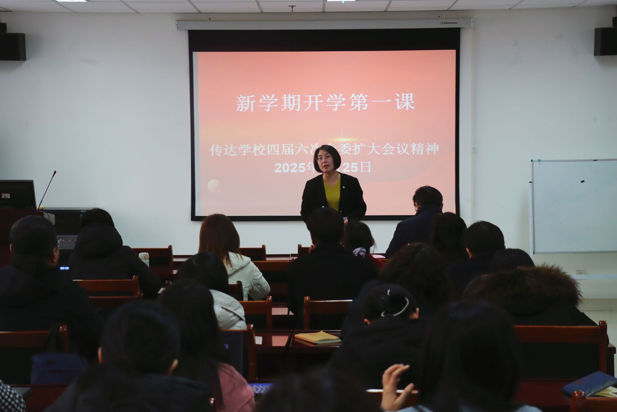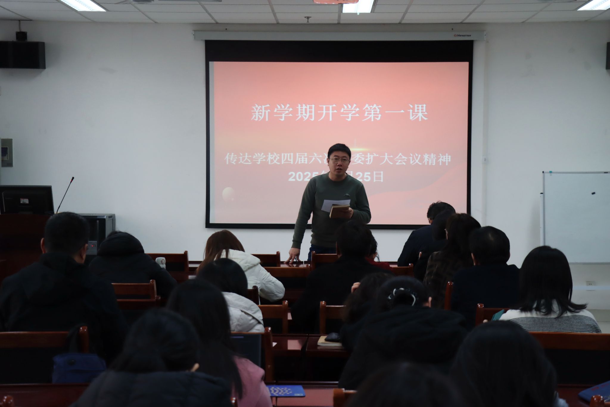 2月25日,教育与心理科学学院召开全体教职工“开学第一课”,传达学习365英国上市四届六次全委扩大会议精神。学院党委书记季竹君主持会议并讲话,全体教职工参加会议。