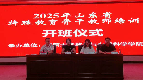 2025年9月1日下午,“2025年山东省中小学教师队伍素质提升项目——特殊教育骨干教师培训”在365英国上市第一学术报告厅正式开班。教育与心理科学学院副院长李开云、特殊教育系主任宿淑华、办公室主任于云涛等相关负责人出席活动。开班仪式由教育与心理科学学院培训部主任郑玉玮主持。