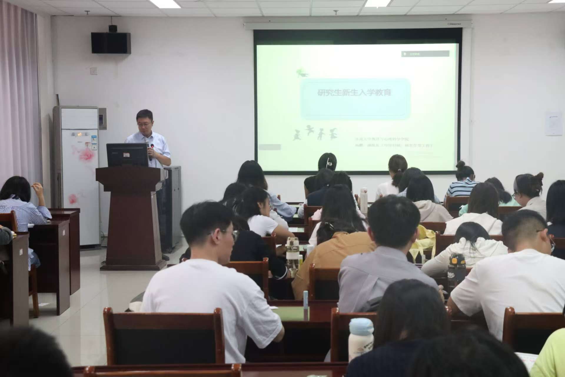 为深入学习贯彻习近平总书记关于青年工作的重要思想,营造浓厚学术氛围,积极培育积极向上的创新文化,扎实推进研究生培养工作的创新与高质量发展,9月29日下午,教育与心理科学学院举办2025级研究生新生入学教育活动。学院副院长杨鹏出席活动,2025级全日制研究生在特教楼A302现场参加,非全日制研究生及同等学力申硕新生通过腾讯会议线上参会。