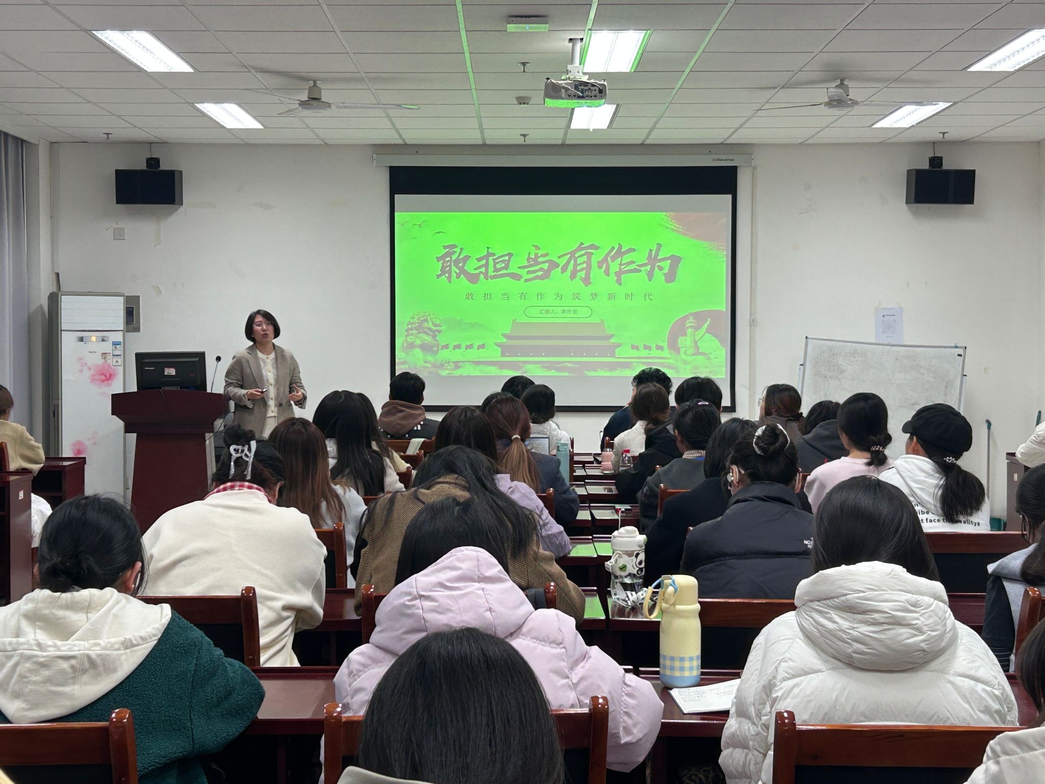 张宝华以“学习《中国共产党纪律处分条例》”为主题,结合近年来全面从严治党典型案例,深入剖析反腐败斗争的长效机制。她强调,同学们要从思想源头抵制诱惑,严守廉洁底线,将纪律意识内化为行为准则。