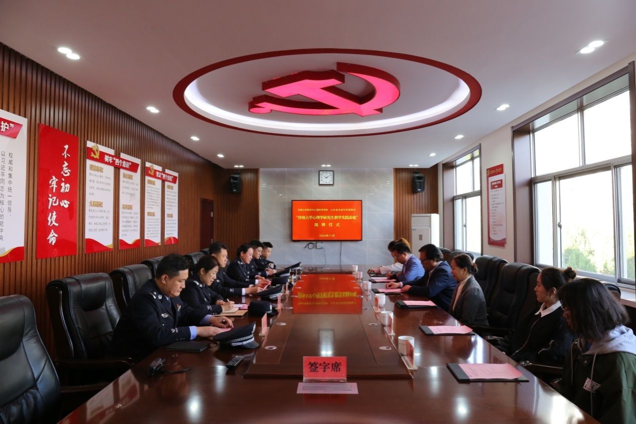 11月5日,教育与心理科学学院一行前往山东省未成年犯管教所开展研究生教学实践基地签约暨揭牌仪式。省未成年犯管教所党委书记、所长马霄鹏,党委副书记、政委陈立云,教育与心理科学学院党委书记季竹君,冯晶副教授、乔福强副教授及学生代表出席仪式。