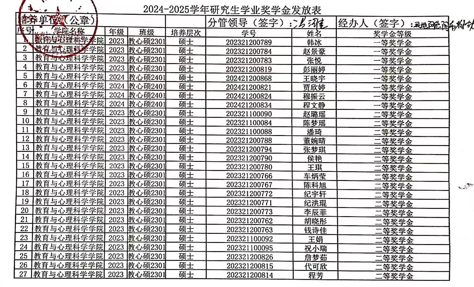 一等: 韩冰、赵景豪、张悦、彭丽婷、贾欣婷、穆振云、王晓宇、程文静(共8人)