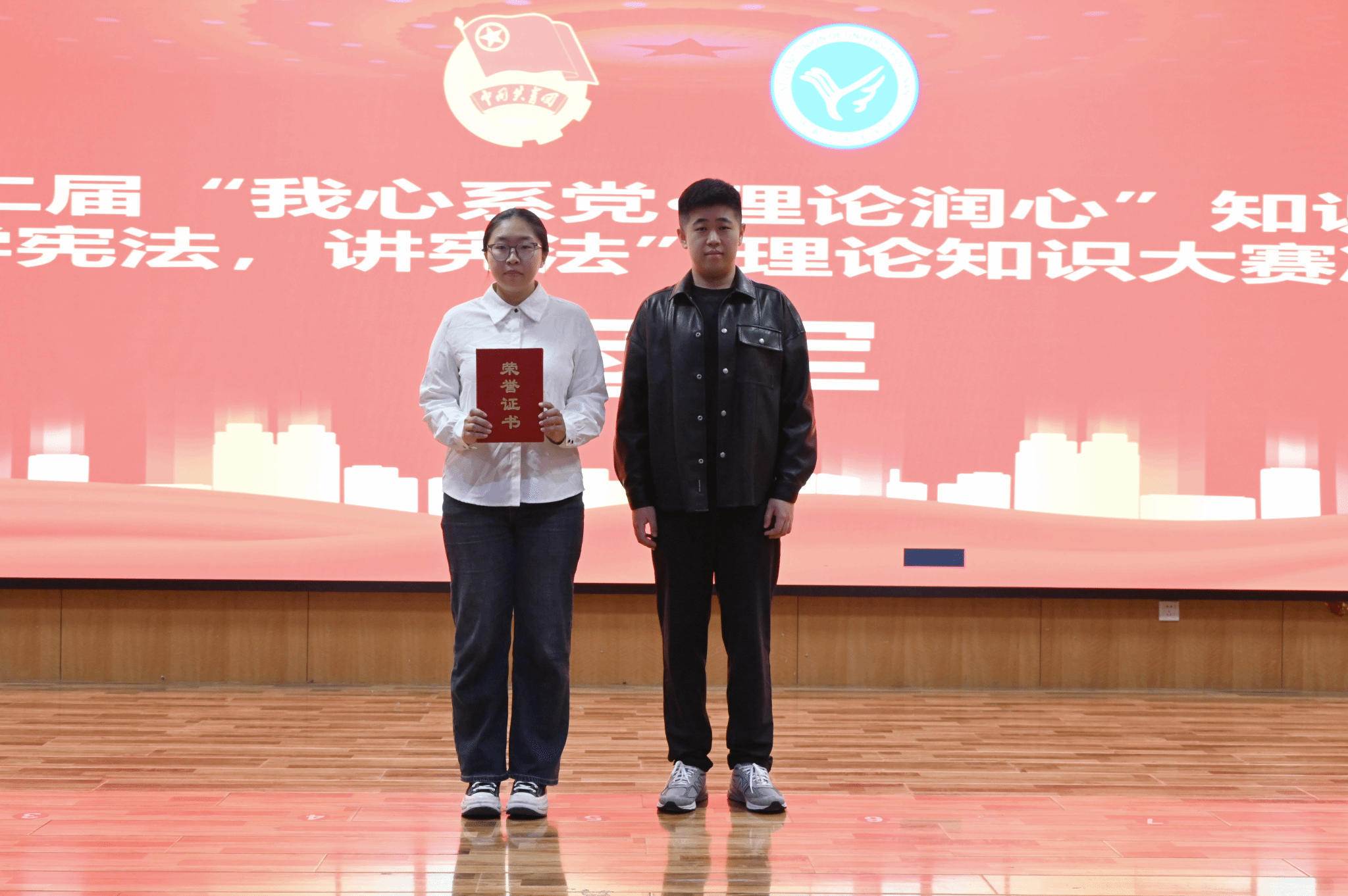 本次竞赛内容系统全面、形式注重实效,为深化大学生法治教育提供了有力平台。 赛事围绕“以赛促学、以学促践”的目标,采取现场竞答形式,内容不仅涵盖宪法条文、法治原则等基础知识,还融入党的创新理论、党史党建等核心内容,全面考查学生的综合理论素养。在激烈的决赛环节中,我院代表队准备充分、反应敏捷、作答精准,展现出对宪法精神的深刻理解与昂扬向上的精神风貌,赢得了评委与观众的一致认可。这一成绩的取得,既源于参赛队员的刻苦备赛,也体现了我院在日常思想政治教育与专业育人中重视理论联系实际的优良传统。